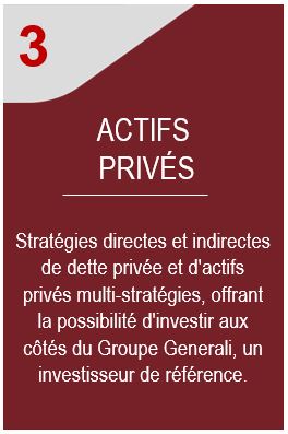 Nous offrons une large gamme de stratégies actives qui couvrent à la fois les marchés côtés et les marchés privés. Nos compétences reposent sur de solides connaissances en investissement qui ont été développées et améliorées par notre expérience dans la gestion d'actifs pour le compte du groupe Generali et de clients externes.