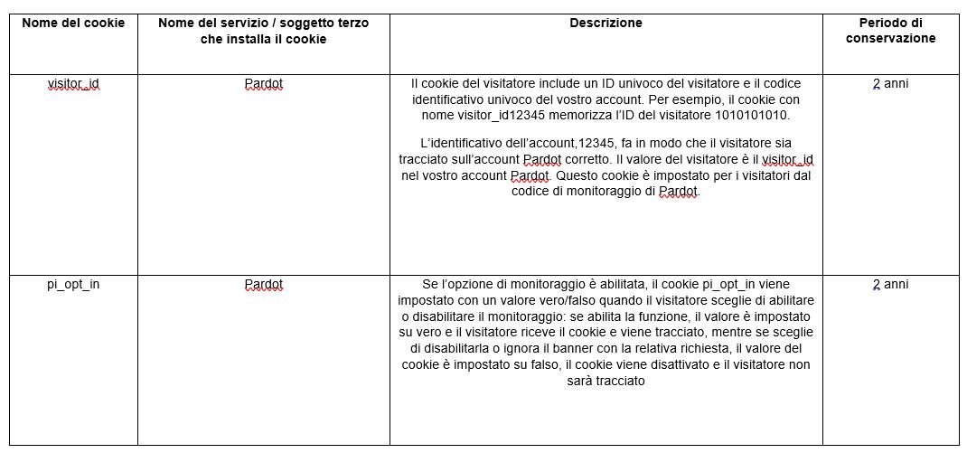 Di seguito è riportato un elenco dei cookie di marketing attualmente impiegati dal Sito.